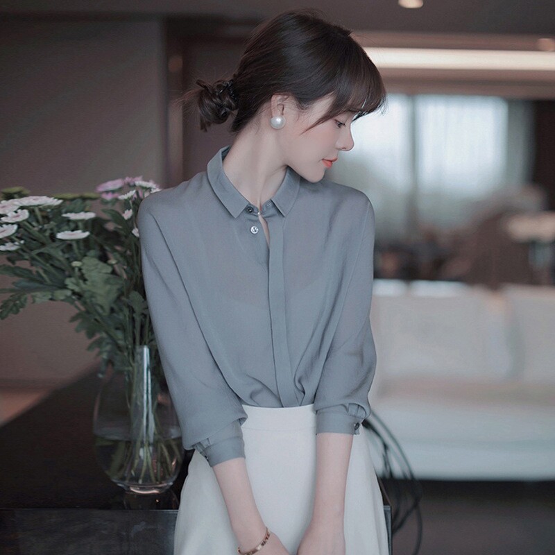 Europe 2022 Fall new shirt women's casual versatile long sleeves lapels niche shirt temperament professional tops
