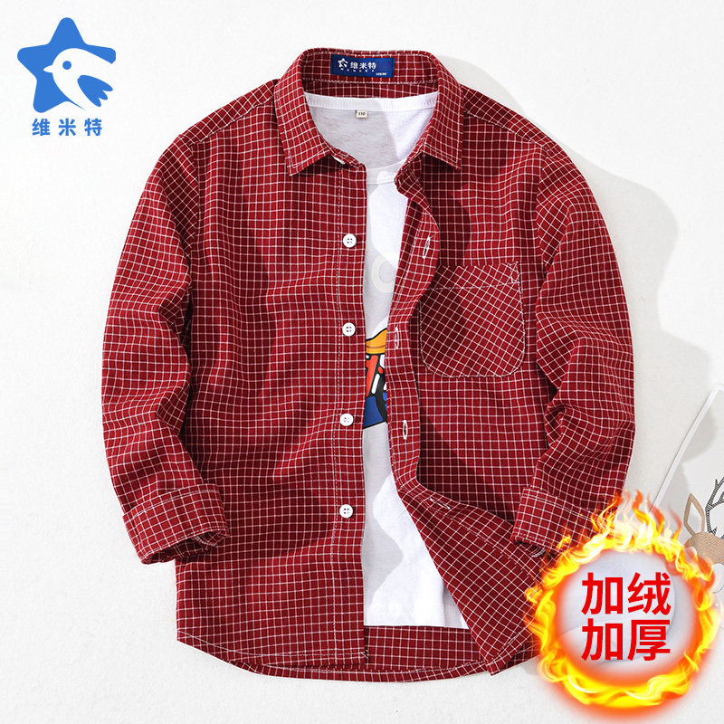 Children's suits new casual cotton long-sleeved shirts medium and large boys fine grid shirts girls spring tops spring and autumn