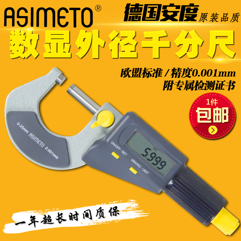 German Ando ASIMETO DIGITAL DISPLAY MICROMETER PROFESSIONAL ELECTRONIC OUTER DIAMETER MEASUREMENTS 1 5V 0-25-50 0001