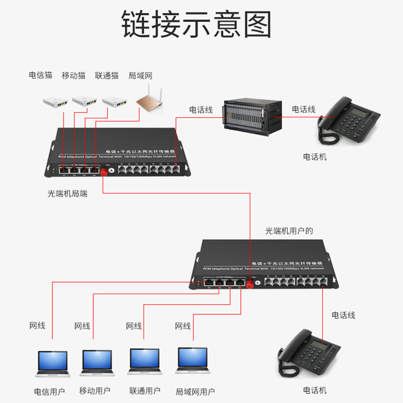Tanghu 8-way telephone optical end machine plus 4-way Gigabit physical isolation network 8-way telephone optical end machine independent network transceiver single fiber FC interface