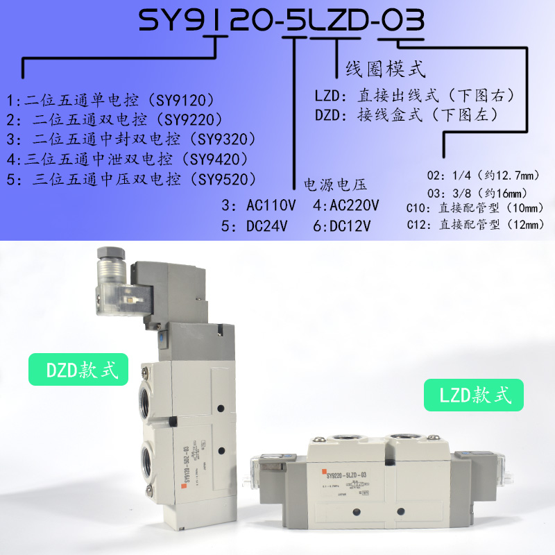 SMC type solenoid valve SY9120-5LZD-03 five-way SY9120 9220 9320-4 6 5GZ DZD-02
