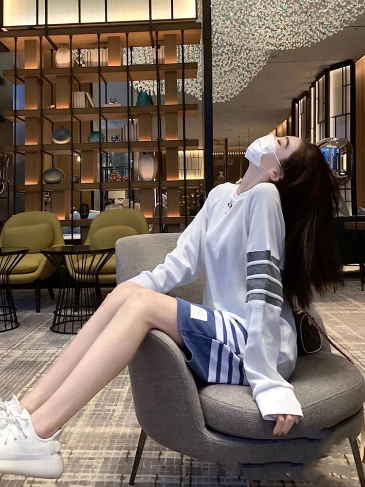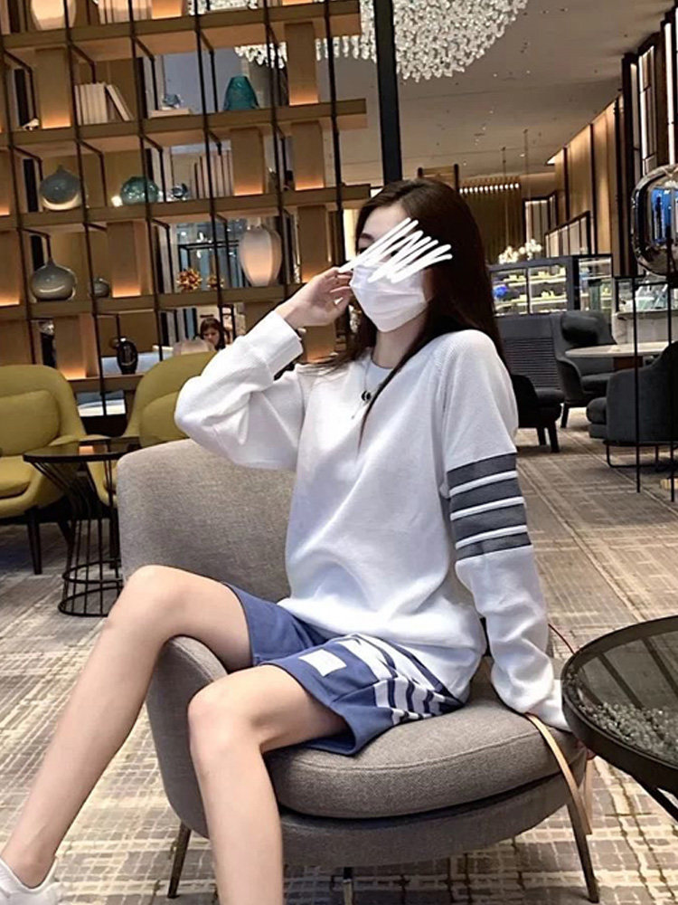 Huafg Ocean Pie Jacket White Thick Cotton T Female Spring and Autumn Port Wind Relaxed Tide Card Students Long Sleeves Outwear to Bottom T-Shirt