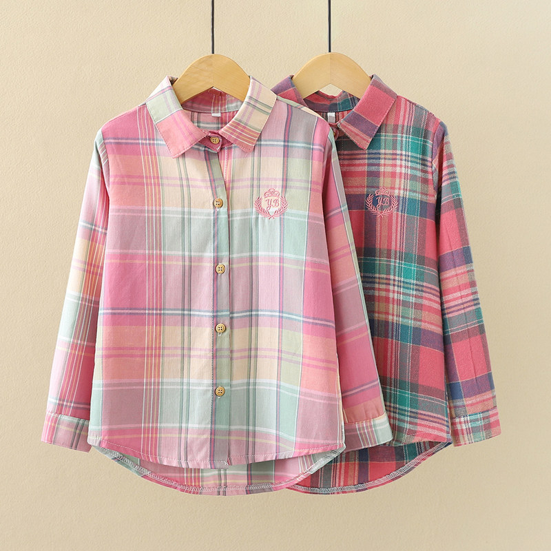 Girls' Plaid Shirts Spring and Autumn 2022 New Western Style Children's Suits Girls' Shirts Middle-aged Children's Autumn Tops