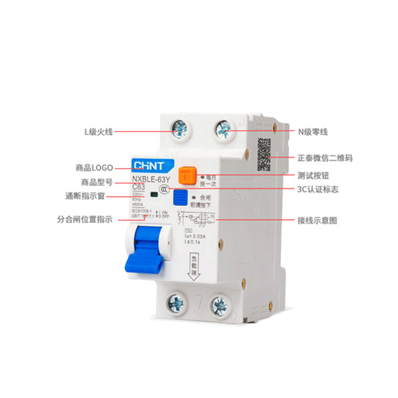 Positive Tai leakage circuit breaker NXBLE-63Y 40 63A 2 bits double wire small air switch with leakage