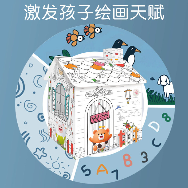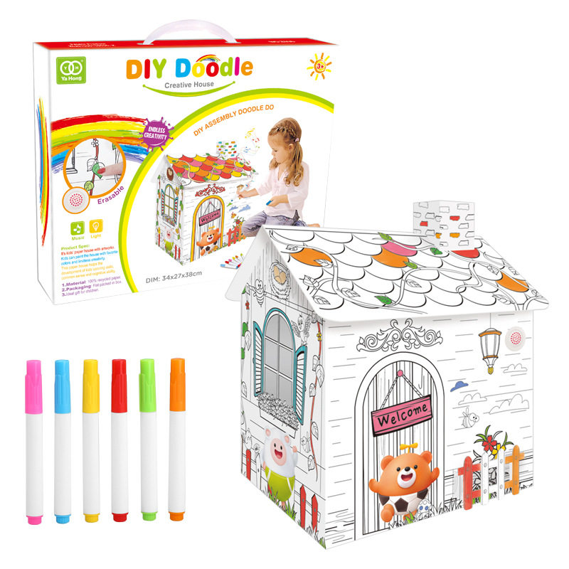 Carton Cottage Creativity Puzzle graffiti Graffiti Erasable with music stereo house Sub-hand model Painted Drawing Toy