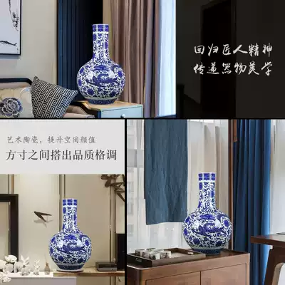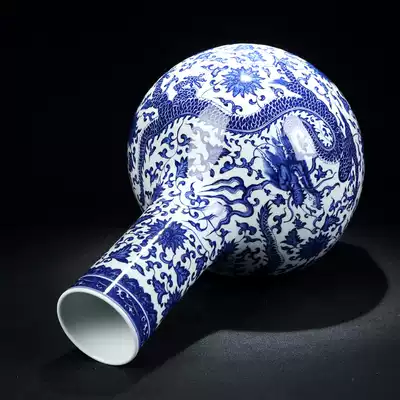 Jingdezhen vase ceramic decoration hand-painted blue and white dragon pattern antique Chinese living room Large Decoration vase