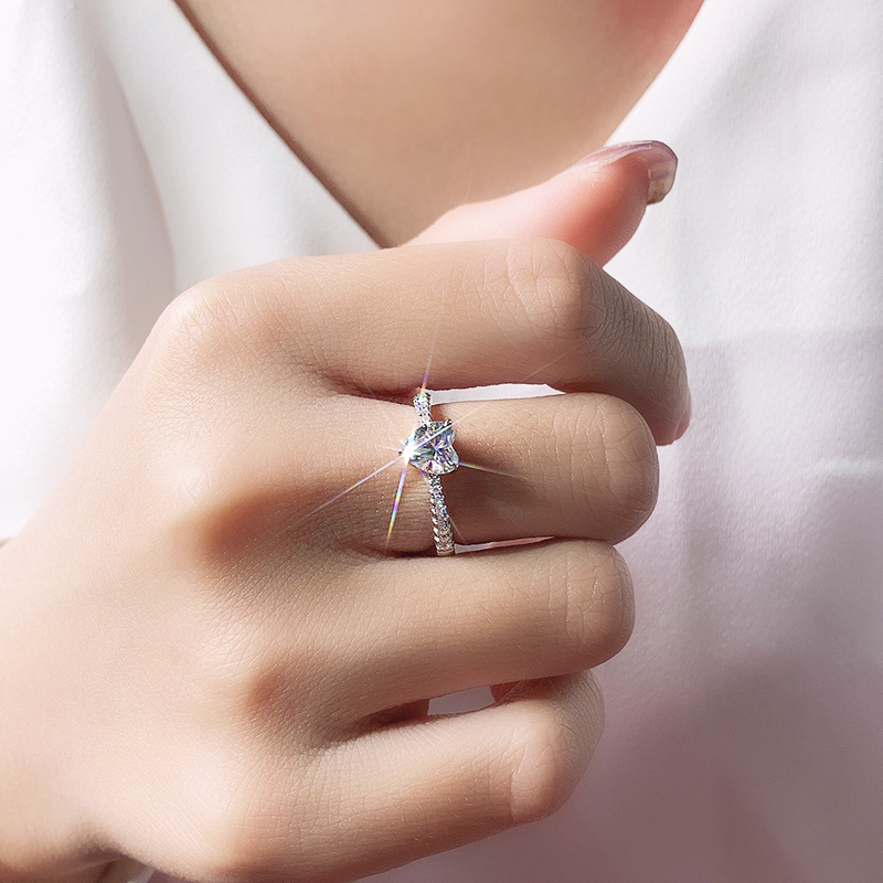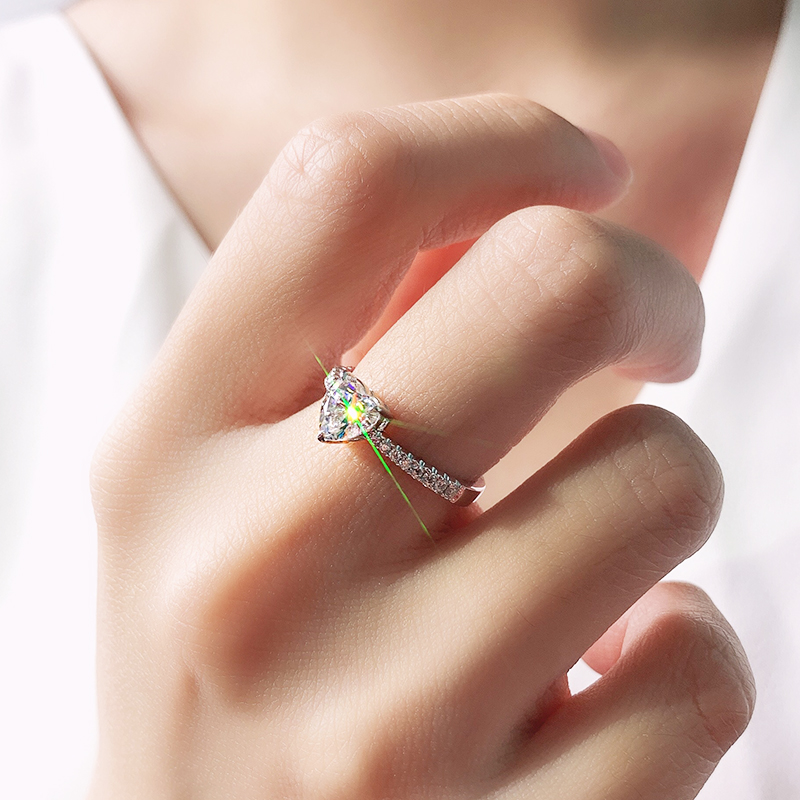 18k platinum cardiac micro - inlaid Mozambe diamond ring girl 1 carat D - color alignment custom married platinum PT 950