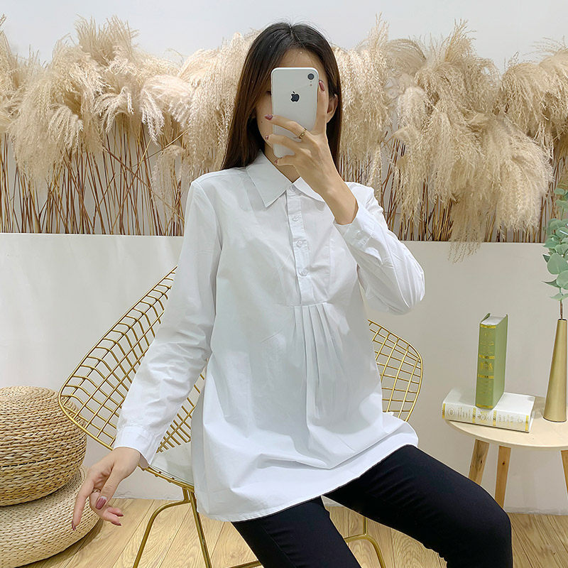 Maternity shirt 2022 spring and autumn season long sleeves professional wear fashion white plus size loose OL overalls undershirted shirt