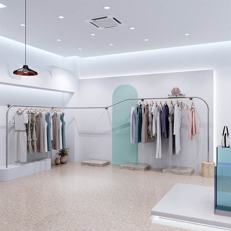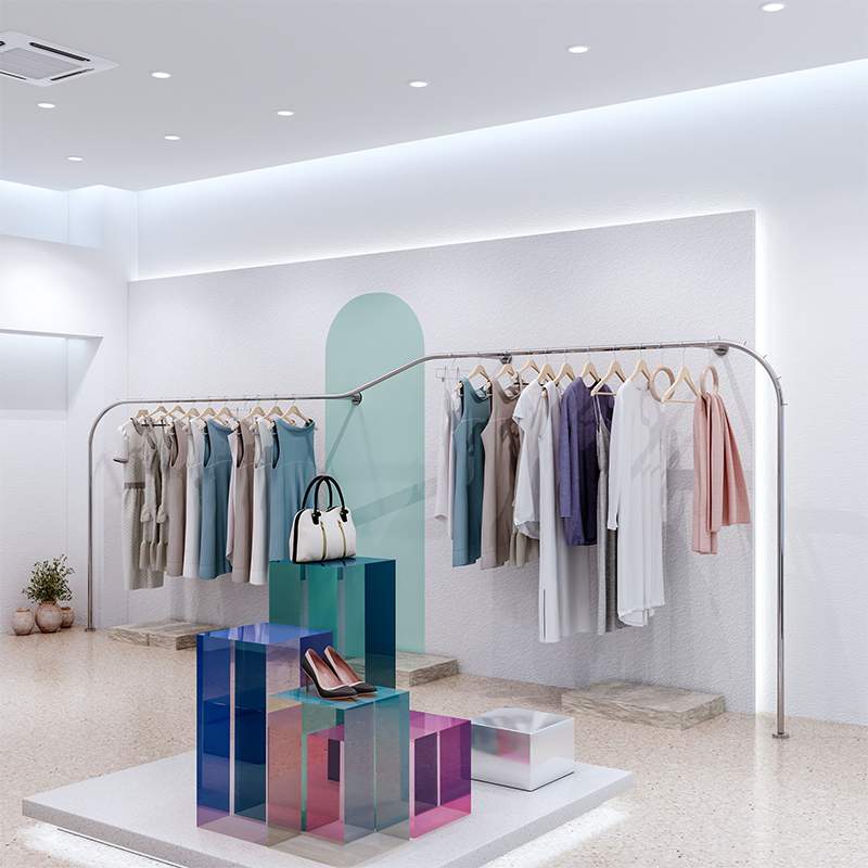 Clothing Store Show Rack Upper Wall Hung Hanger Floor Type Tennis Red Women's Clothing Store Suspended Stainless Steel Hanging Hanger Wall-mounted