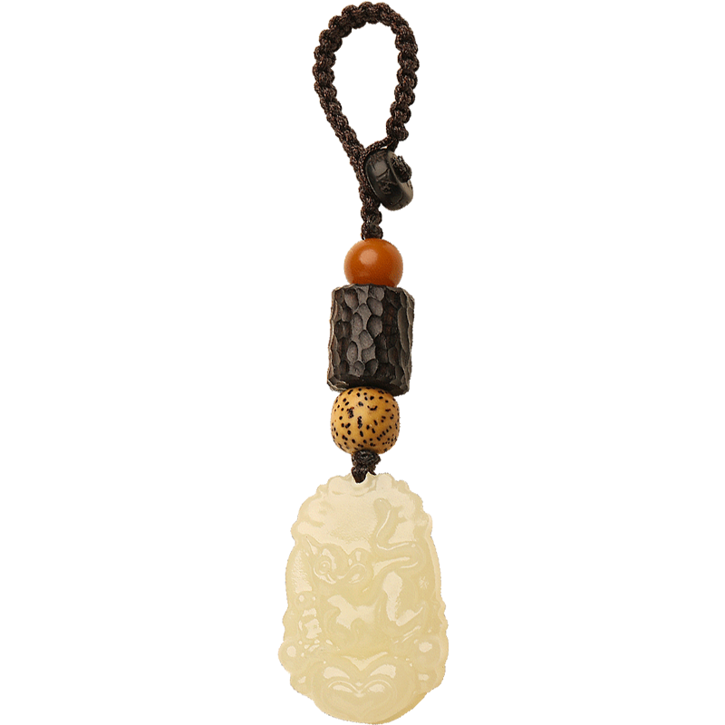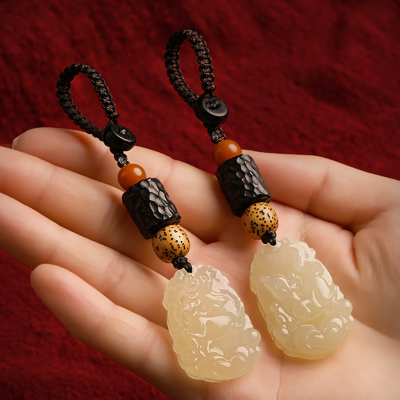 High-grade natural jade zodiac keychain 12 genus phase personality car pendant creative sheep monkey tiger horse chicken rat