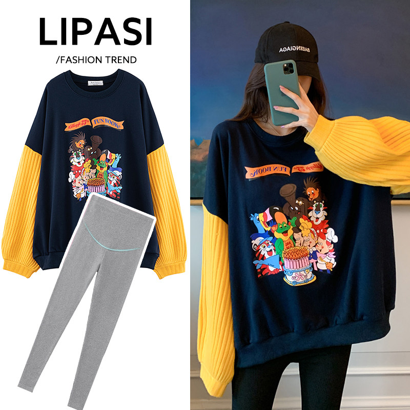Maternity sweatshirt medium long net red maternity dress hot mom personality fashion two-piece maternity spring and autumn suit