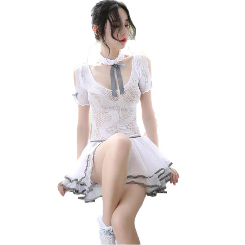 Sexy lingerie new one-shoulder mesh lace maid cute maid uniform princess tutu skirt