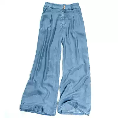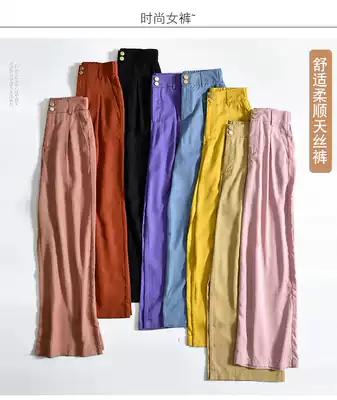 Clearance processing tencel drop sense hanging pink wide-leg pants women's high-waist denim ice silk loose summer thin large size