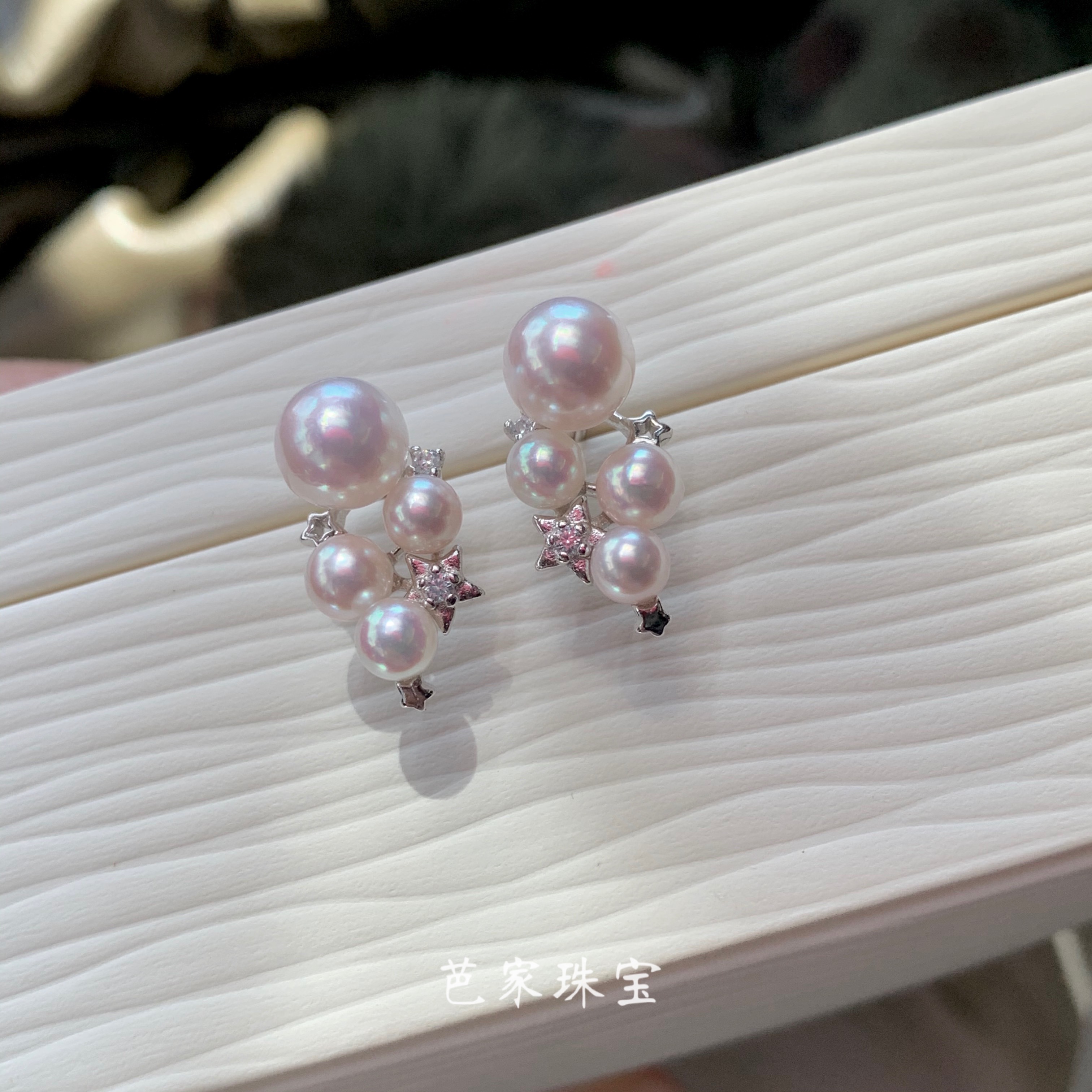 Bajia Jewelry Stars M's Natural Japanese Akoya Seawater Pearl 925 Sterling Silver Earrings Earrings Silver Jewelry