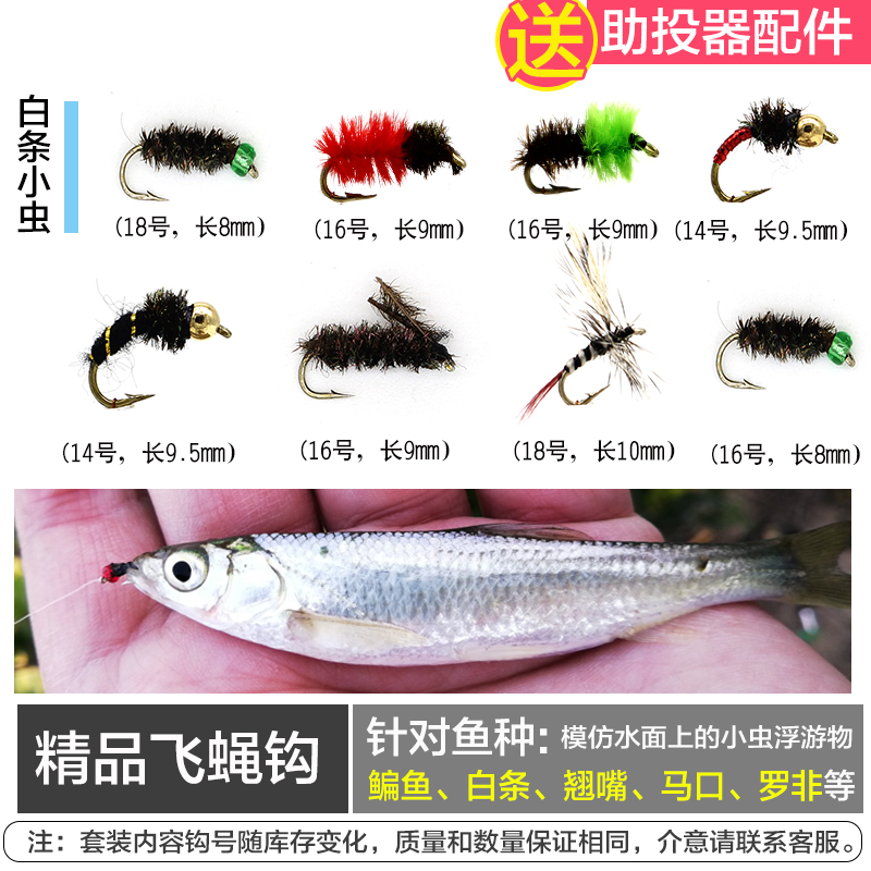 Fly hook set poisonous insect poisonous mosquito Lu yama mouth white striped cocked fish scale fly hook micro object small floating water bionic