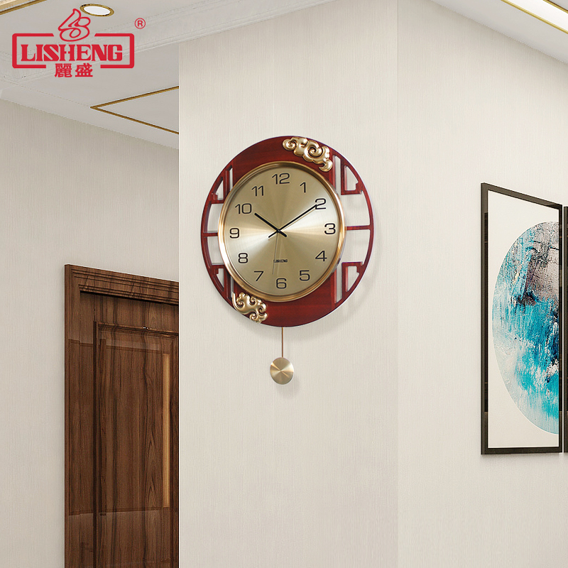 Lisein New Chinese Solid Wood Metal Hanging Bell Light Luxury Living Room Hanging Wall Clock Home China Wind Atmospheric Fashion Watches