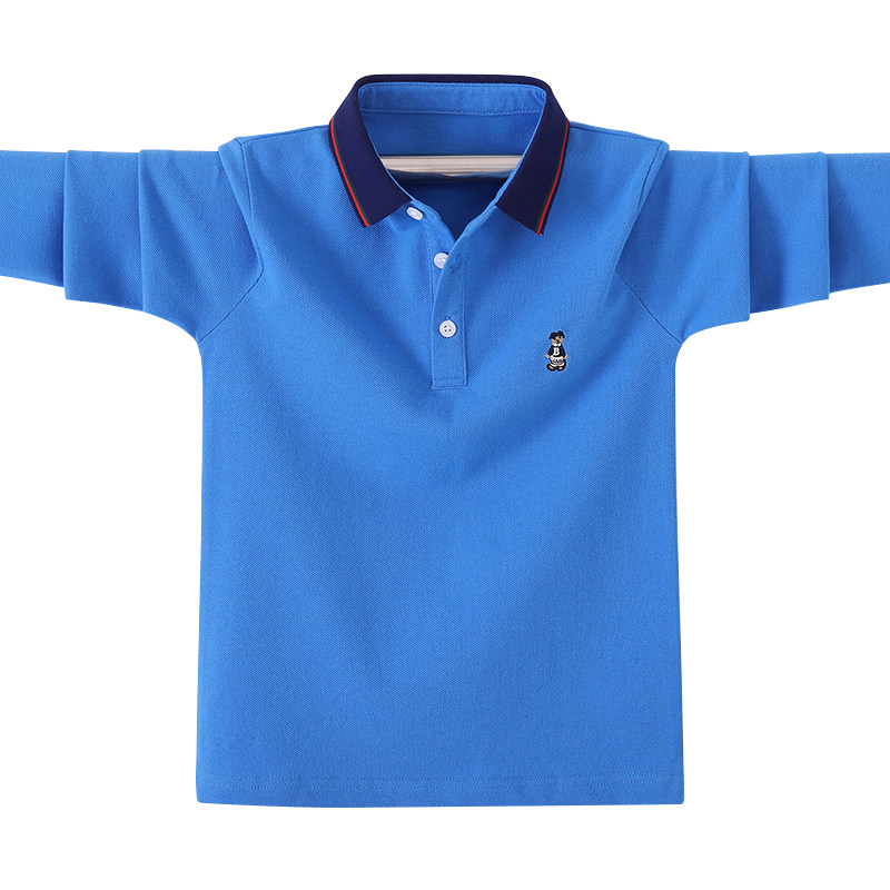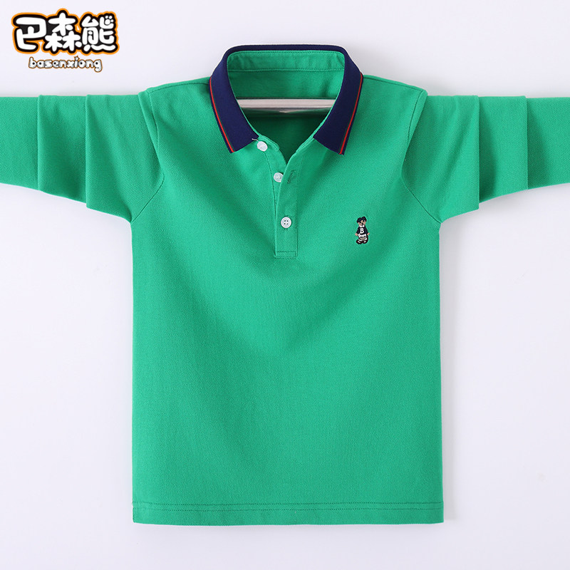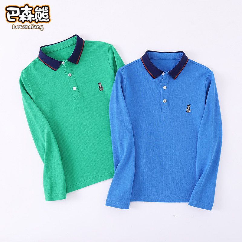 Children's long-sleeved t-shirt 2021 spring new medium and large children's lapel paul shirt Children's cotton top boy t-shirt