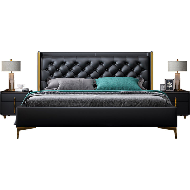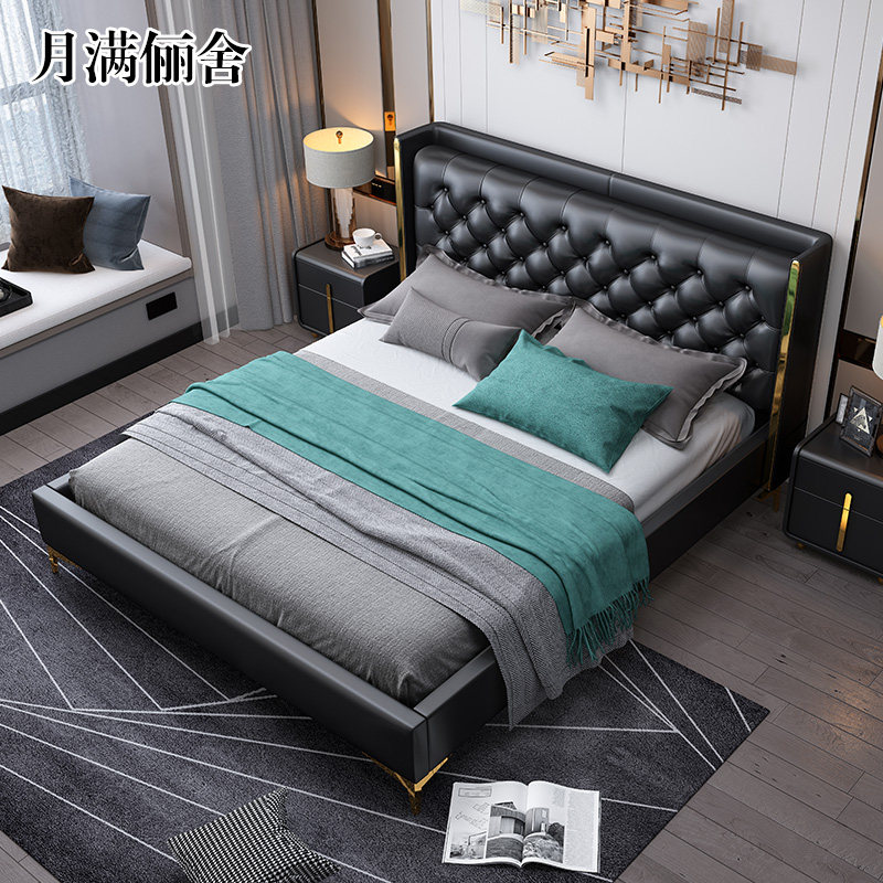 Light and luxurious postmodern minimalist leather bed master bedroom with double bed bedroom furniture Nordic wedding bed Italian Princess Extreme Princess Bed