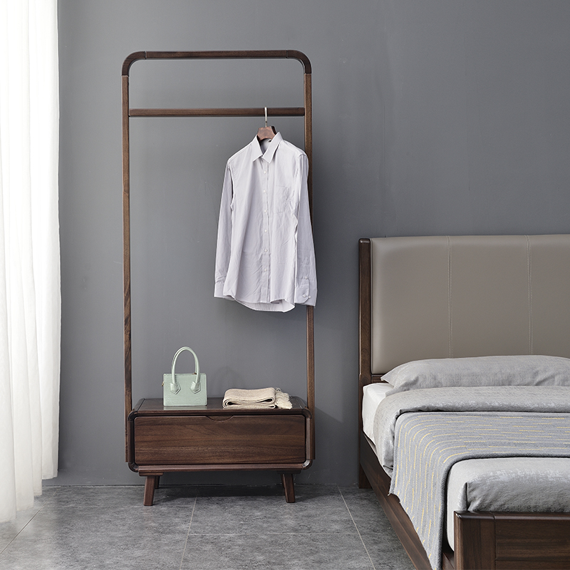 Minimalist Black Huaches wooden bedroom hanger Home Multi-functional set clothes hanging clothes All solid wood Clothes hat rack floor wood