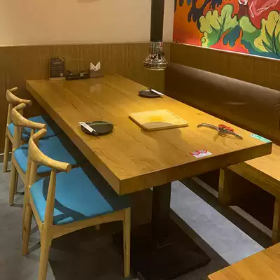 Solid wood hot pot table induction cooker integrated smokeless purification restaurant with string incense barbecue meat table and chair combination commercial