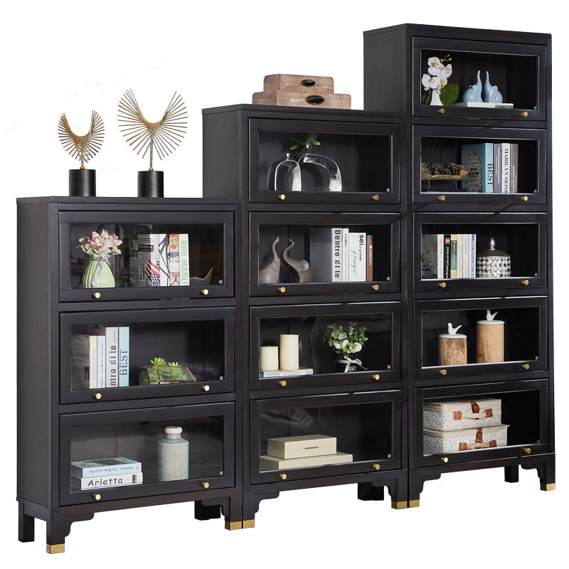 New Chinese-style solid wood bookcase light luxury living room storage cabinet combination bookcase with glass door dustproof Zen ebony bookshelf