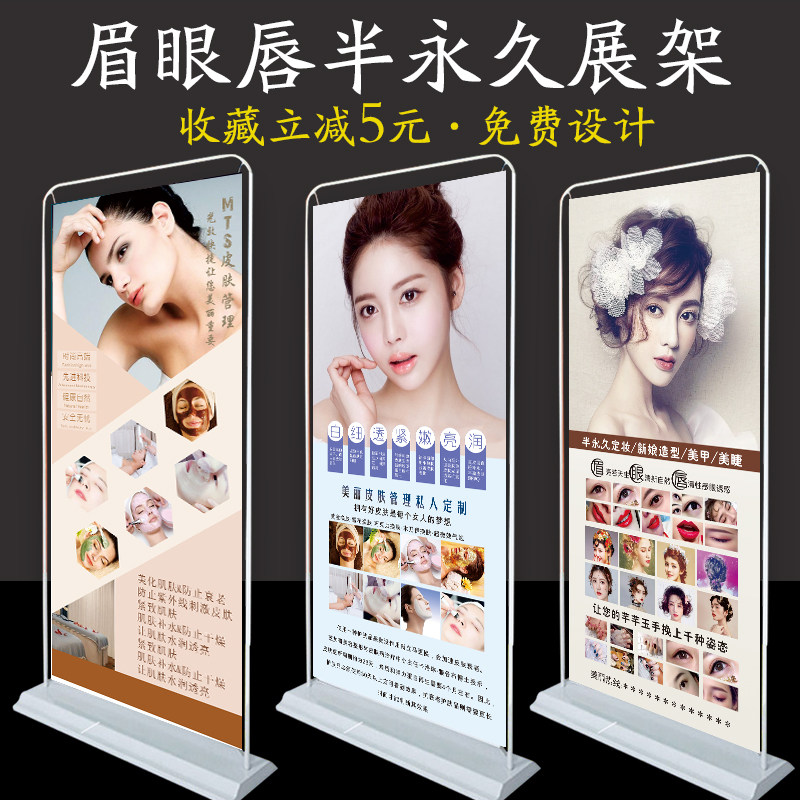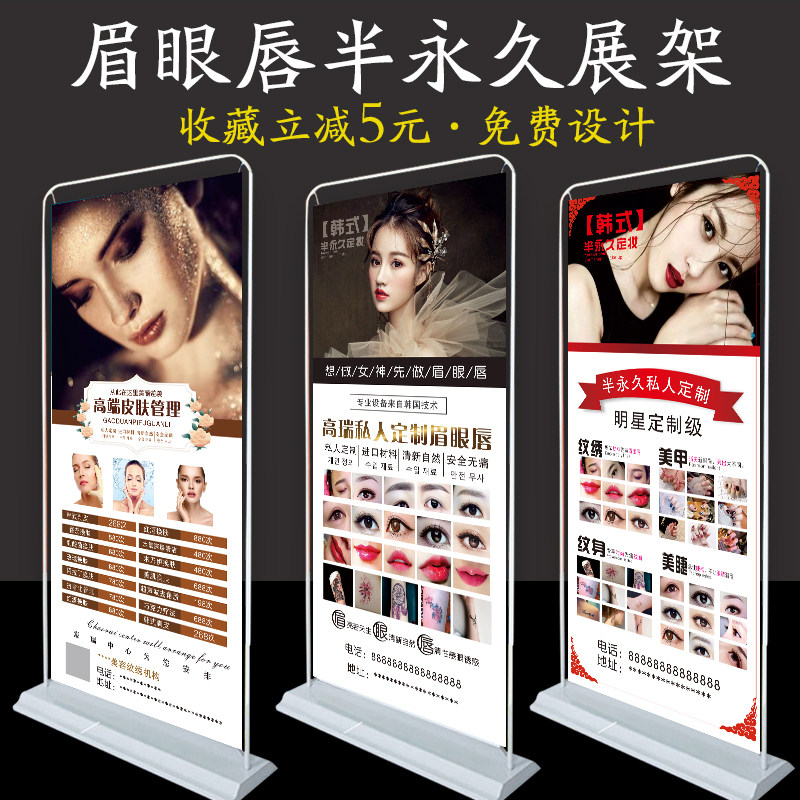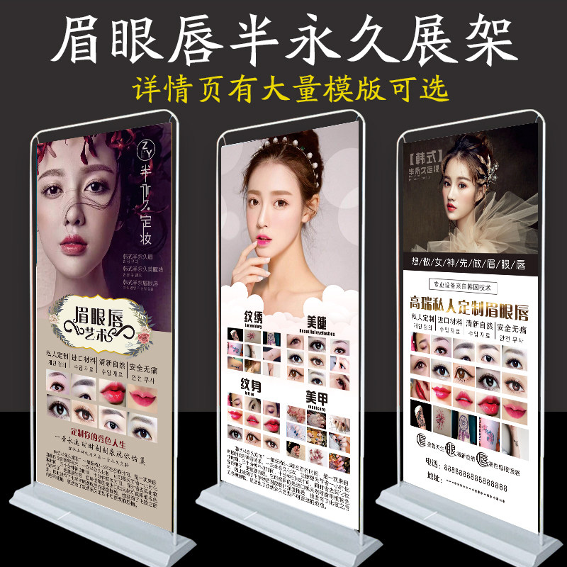 Tattoo embroidery semi-permanent eyebrow and eye care beauty nail art water injection door display rack 80x180 poster opening advertising Easy to pull up