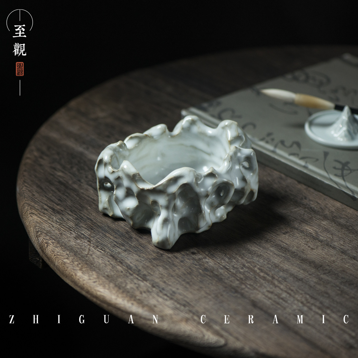 To View Lake Stone Large Number Pen Wash Vat Ceramic Ru Kiln Water Spittoon Wenfang Four Treasures Swing Pieces Calligraphy Brush Calligraphy Country Painting Supplies