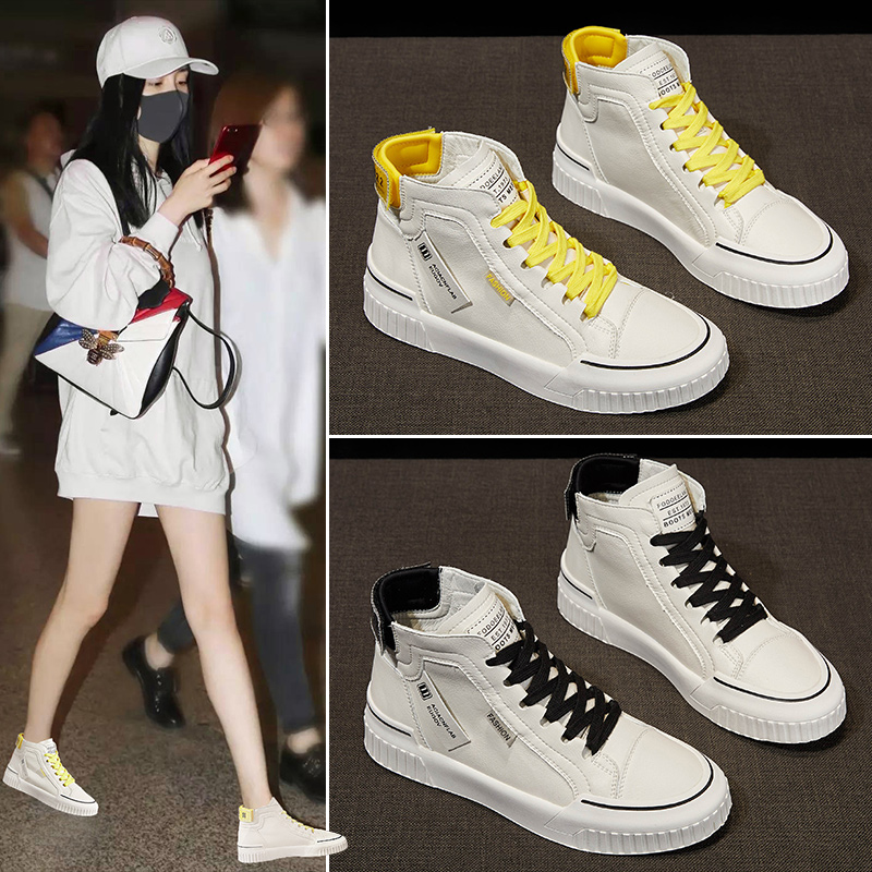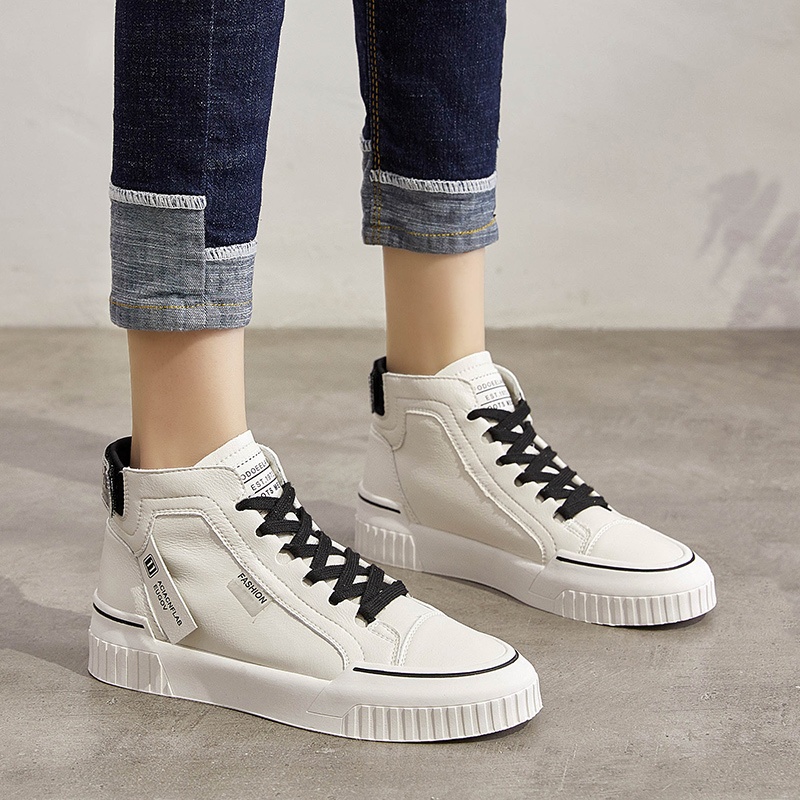 Han - tag fashion leather leather white shoes girls in autumn 2023 new female shoes net red flat leisure high - helper shoes