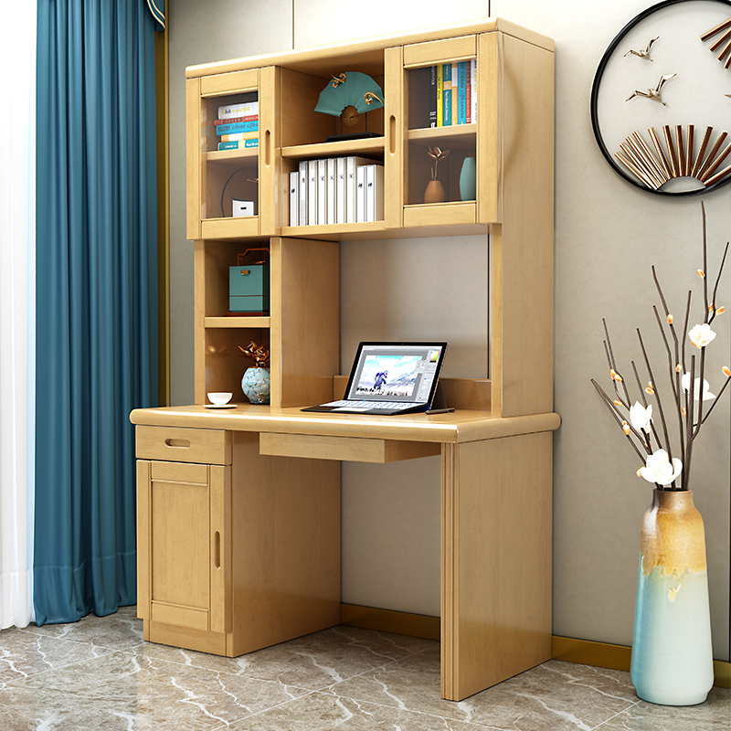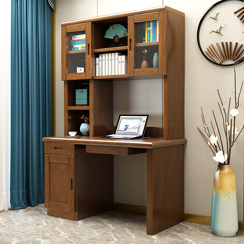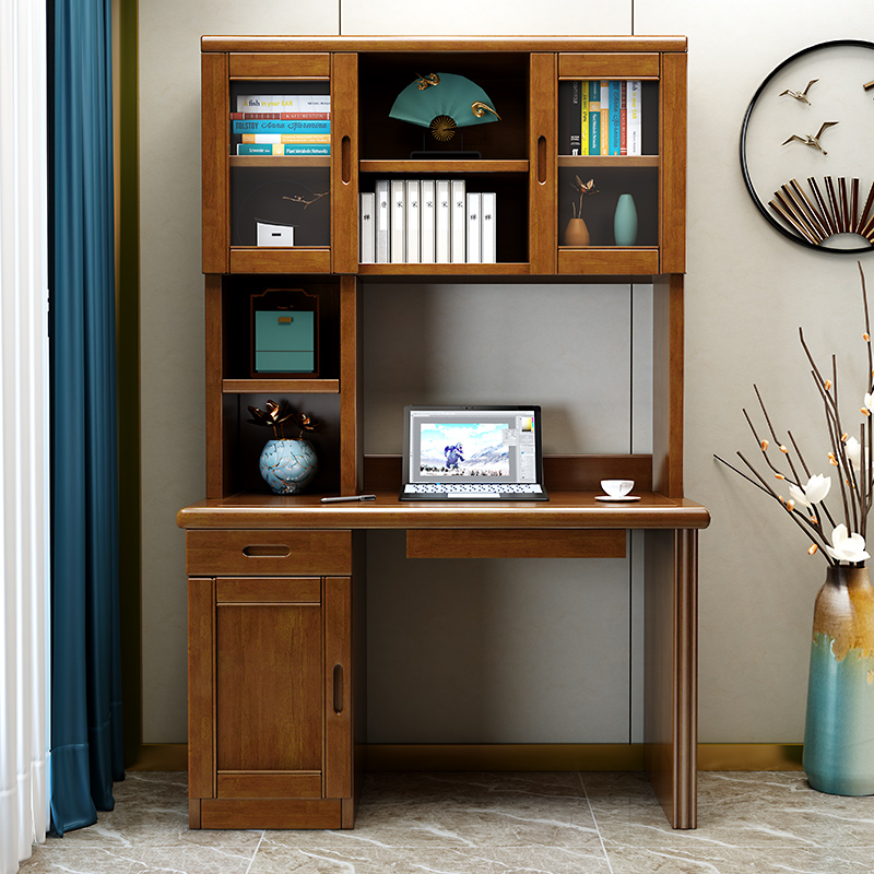 Chinese-style solid wood desk bookcase bookshelf one home desktop computer desk desk study furniture set combination