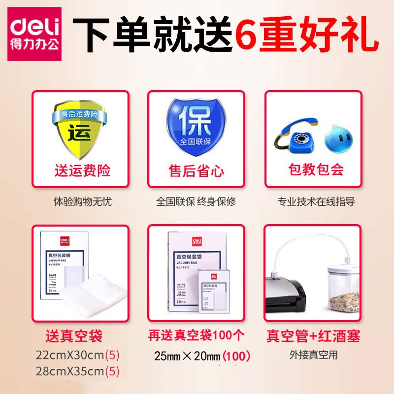 Deli 14885 household vacuum machine dry and wet food vegetable and fruit fresh-keeping packaging machine vacuum size pee