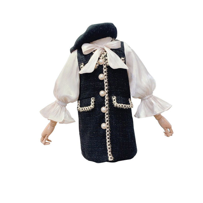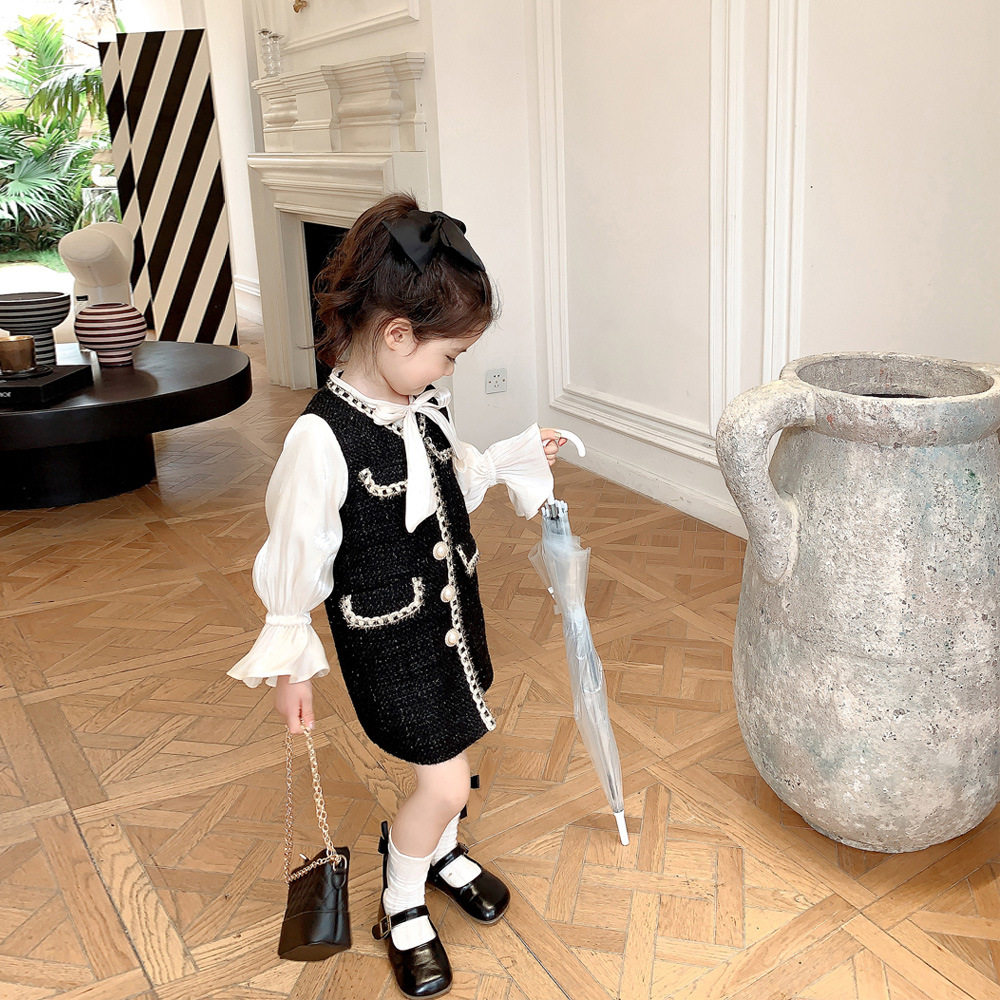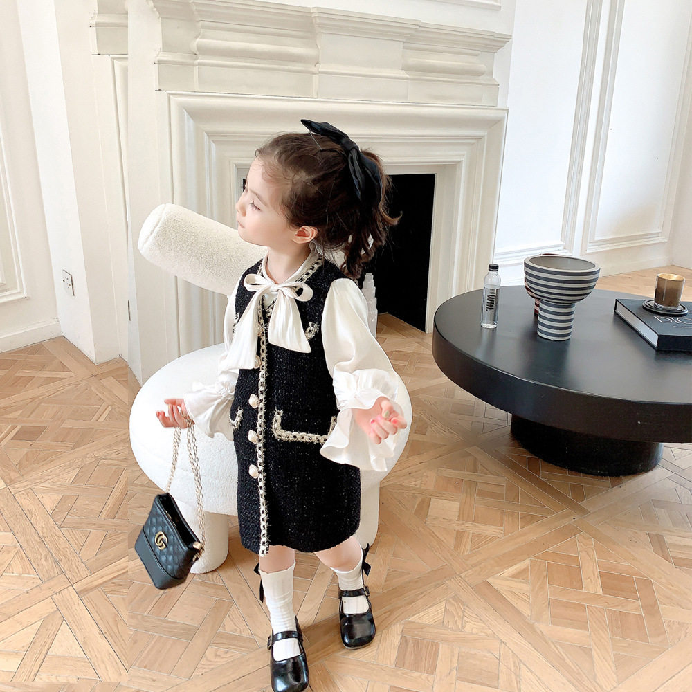 Girl's small fragrant wind medium long version coat polenta mesh red child clothing 2022 fall Fake two pieces sleeves coat jacket coat