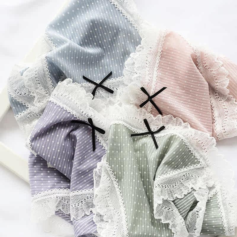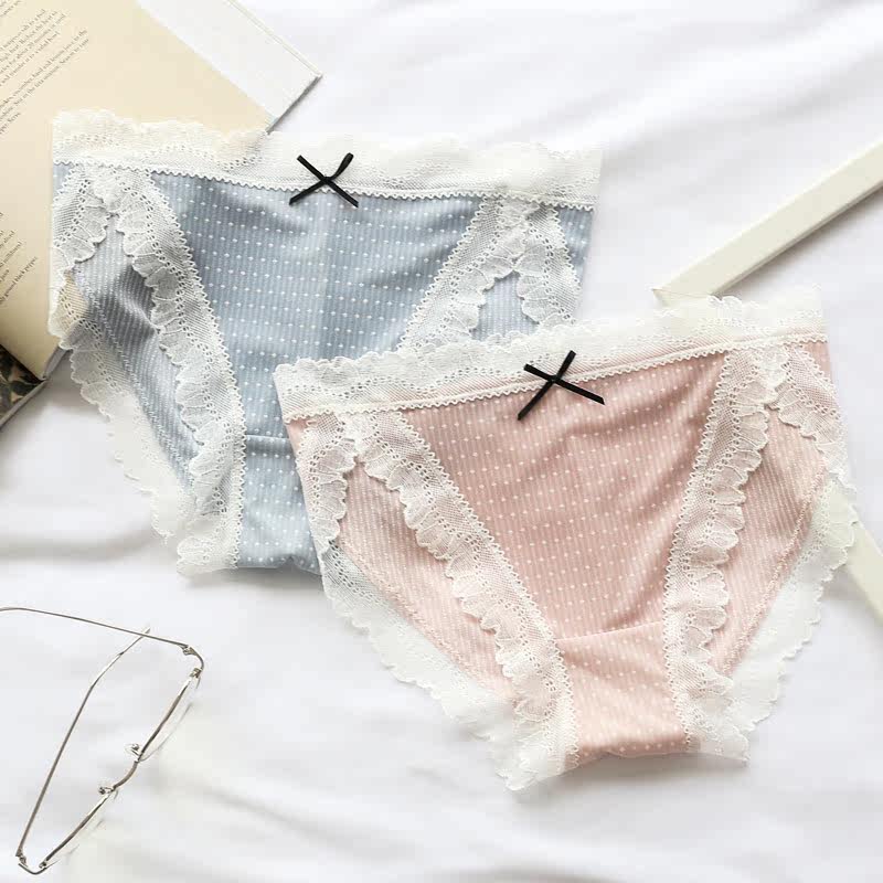 Panties Girl Ice Girl Girl Cute Day Style Lace Lace Lace sweet and slim slim silk slip No marks in low waist triangular trousers