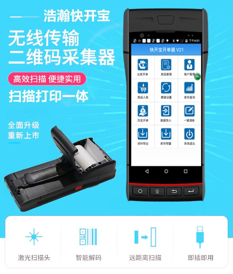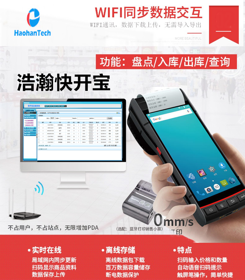 Haohan inventory machine wireless invoicing warehouse scanner billing pda handheld terminal printing barcode label