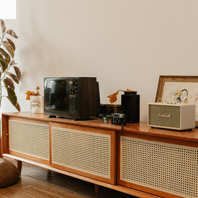 Nordic solid wood TV cabinet rattan modern minimalist Japanese minimalist living room storage cabinet small apartment floor-to-ceiling storage cabinet