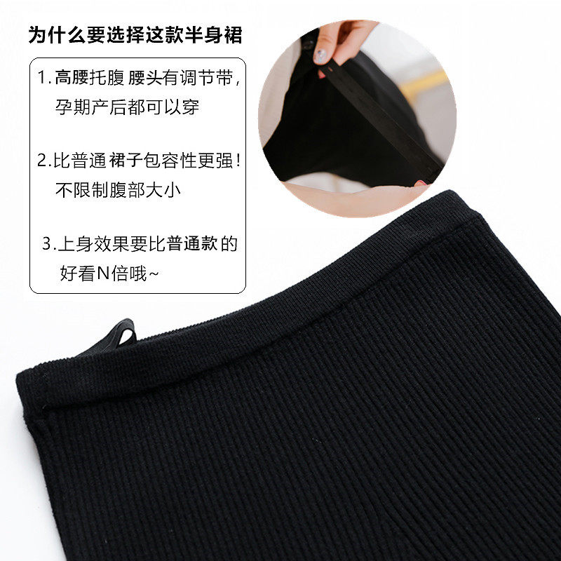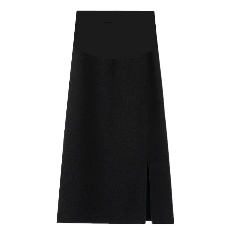 2021 Autumn Winter New Pregnant Woman Black Knit Half Body Dress Boomer Hair Line One Step Long Dresses Belly Open Fork Skirt