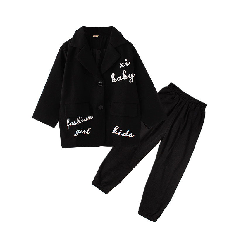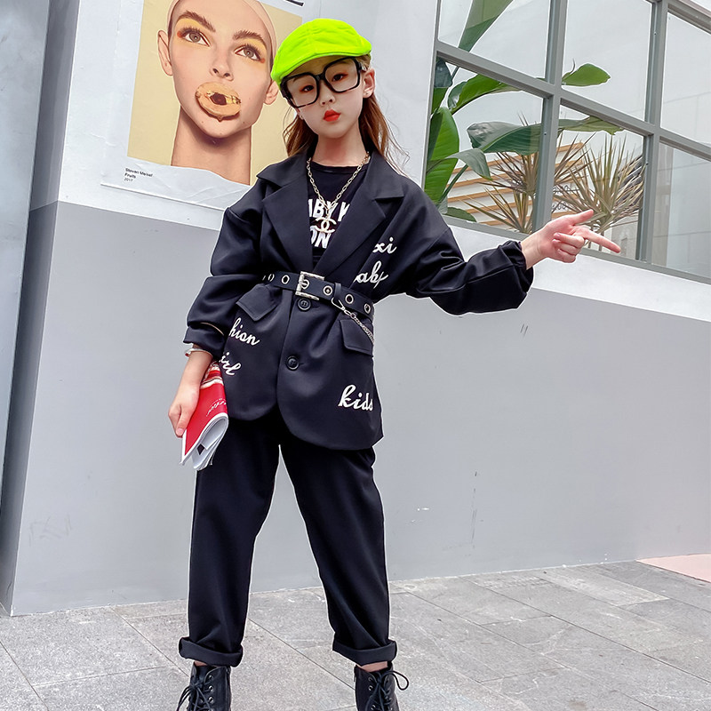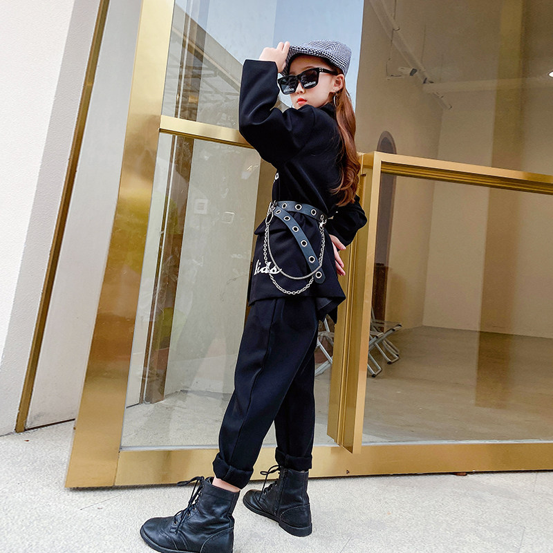 Girls catwalk suit suit 2022 spring and autumn Hepburn style retro dark suit children's British handsome two-piece suit