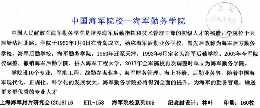 2018)16 HJL-158 Commemorative seal of the People's Liberation Army-Naval Service College of China