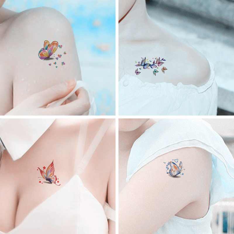 Tattoo stickers waterproof female long-lasting net red 3d Korean simulation ins wind color butterfly cute tattoo is not permanent