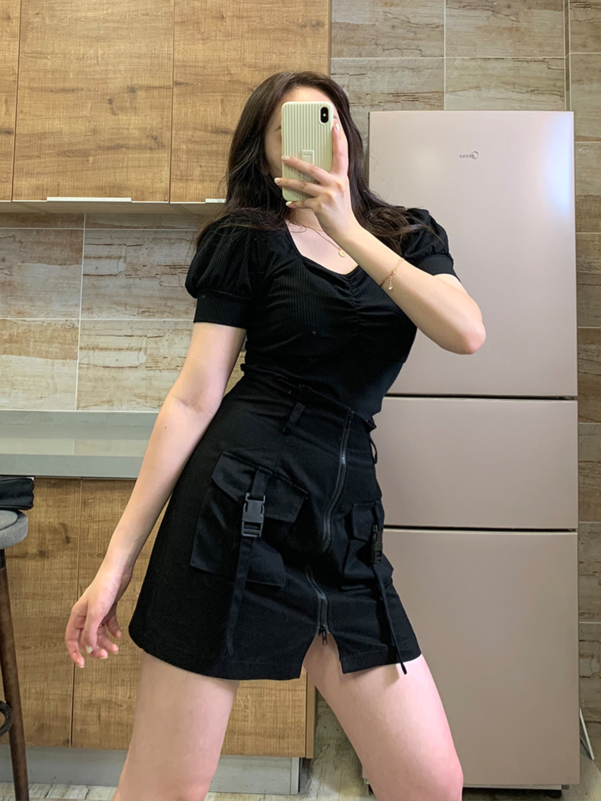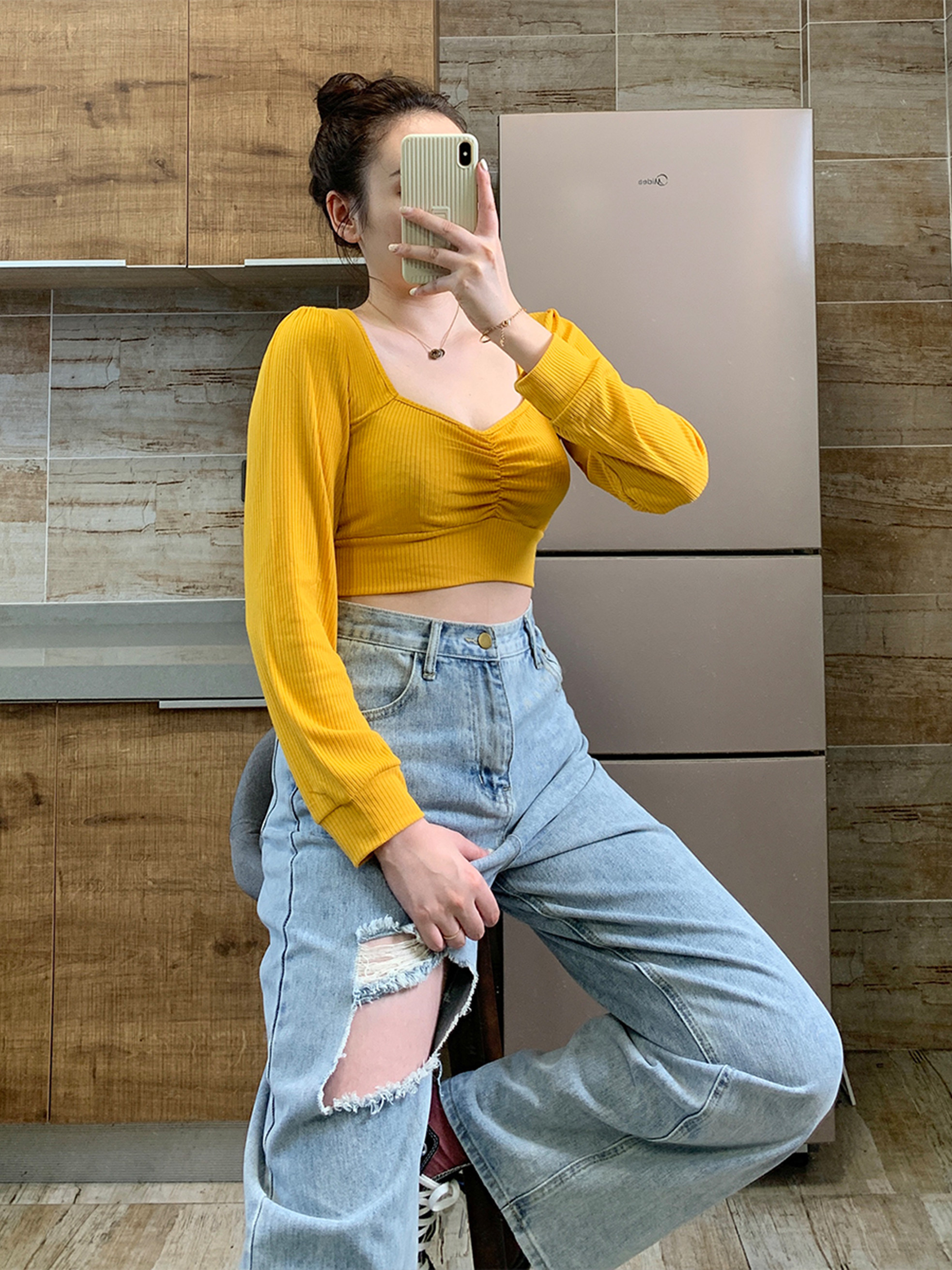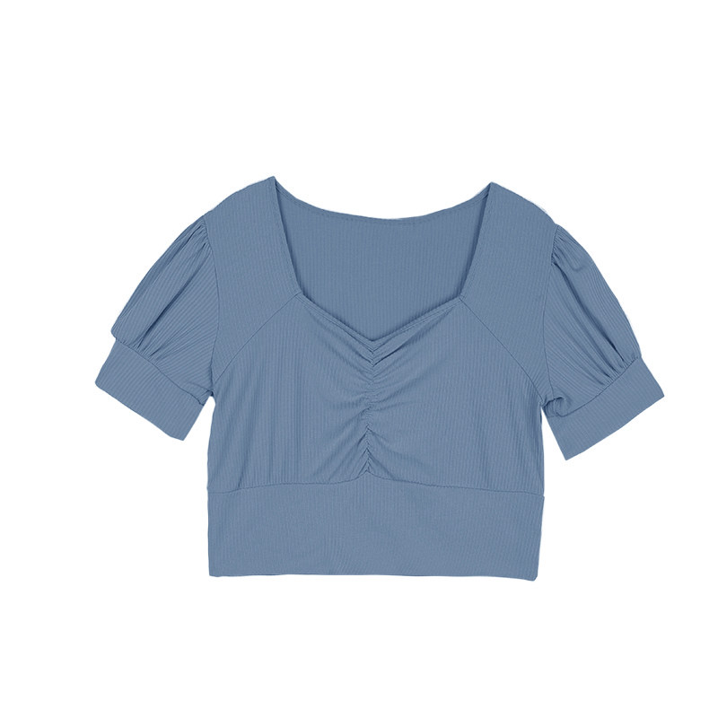 European and American style slim short top Julu studio fat mm square neck short thin top tight-fitting navel sexy
