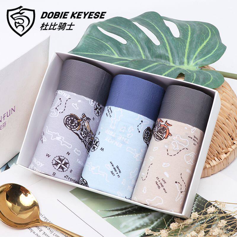 Butterfly Amphine Male Durbi Rider Three Carts Pure Cotton Elastic Cotton Business Printed Four-corner Underpants Men's Four Corner Pants