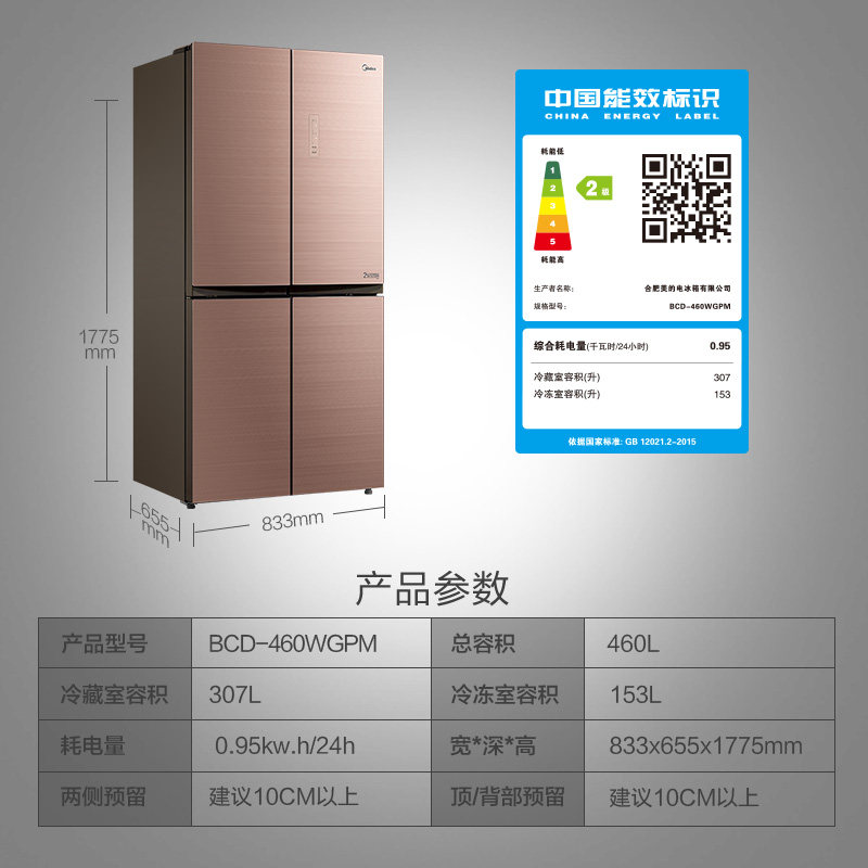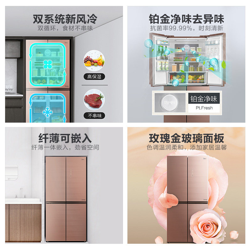 Midea refrigerator commercial double double door refrigerator cross four-door inverter frost-free ultra-thin BCD-460WGPM