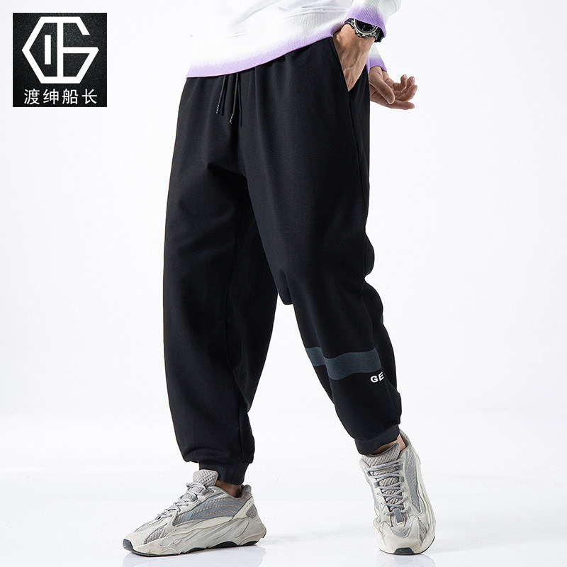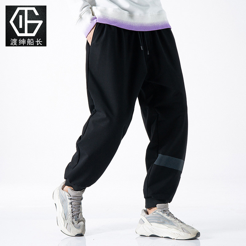 Plus-size sweatpants for men, slacks for men, high-waisted stretch sweatpants, black roll-up pants, 56XL