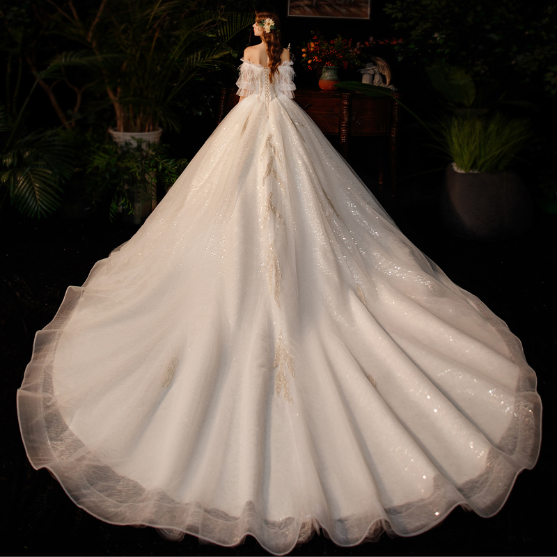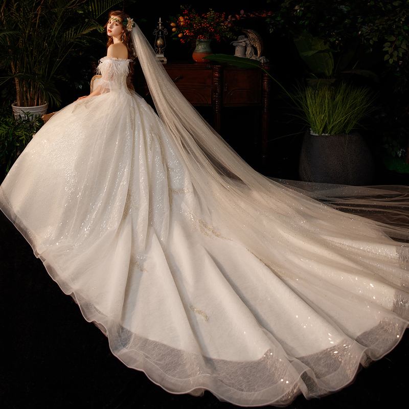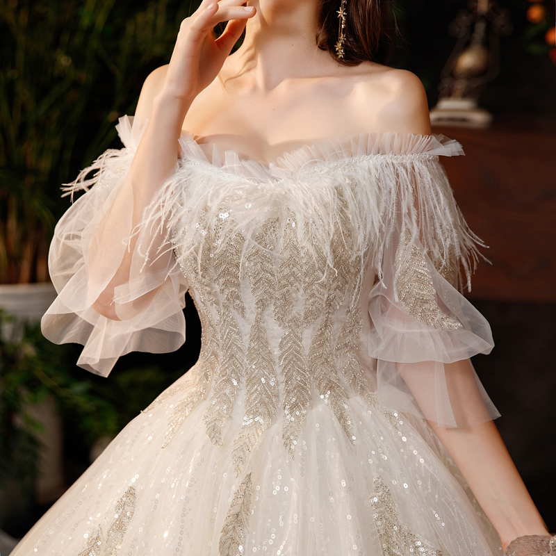 Main wedding dress 2021 new small child bridal style I shoulder 2022 Mori series startug end of the door yarn light