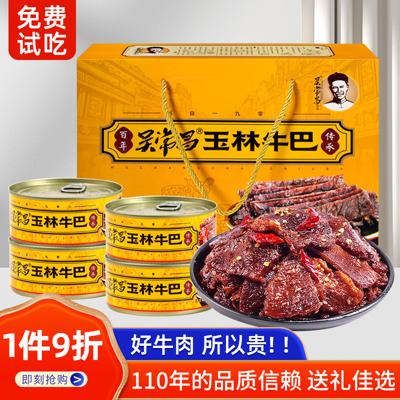 Wu Changchang Yulin Niuba 180g*4 cans gift boxed beef jerky original spicy snack Guangxi specialty beef jerky
