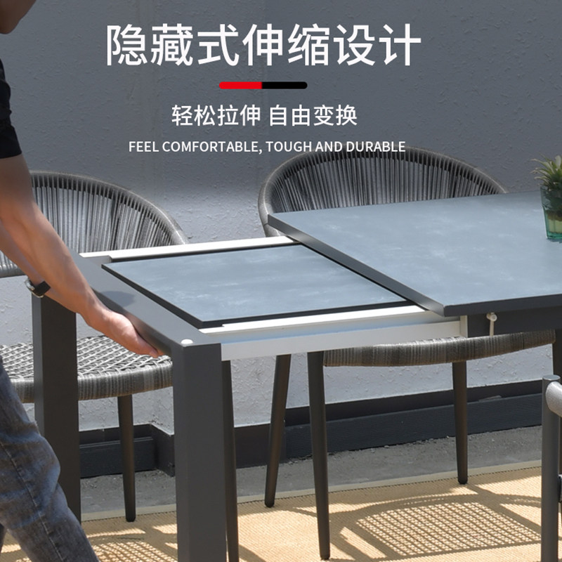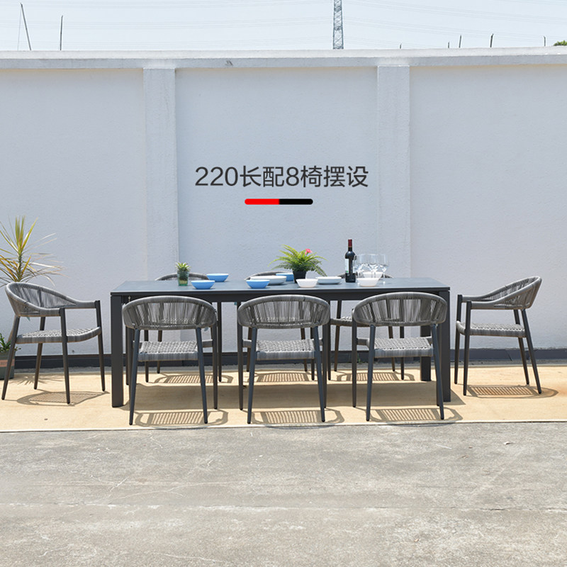 Outdoor table and chairs 280CM telescopic porcelain glass long table rattan chair terrace courtyard garden leisure villa outdoor dining table