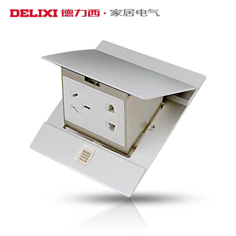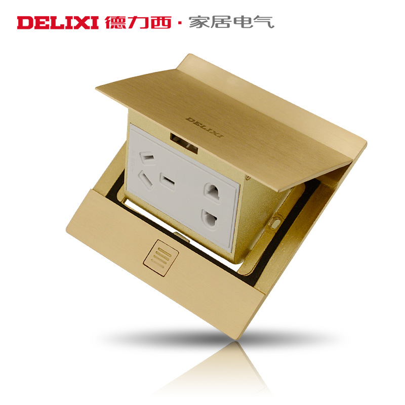 Delixi waterproof hydraulic floor socket gold five-hole copper ground plug ground phone computer silver gray silver