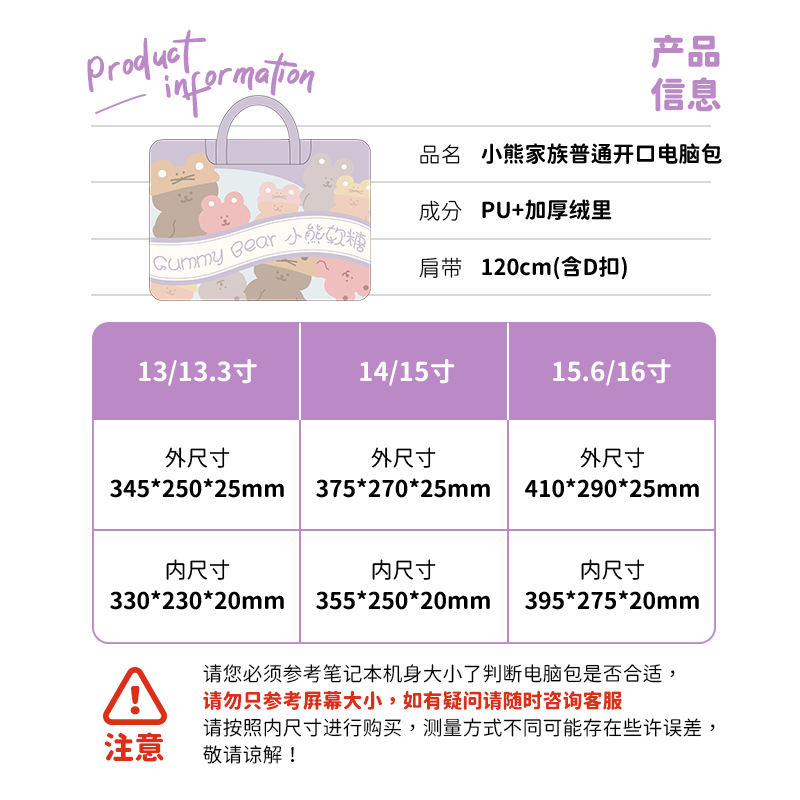 Small Bear family common opening Llever small bear family common opening three-in-one (can carry a suitcase) (don't shoot) Do not buy it as per screen size Please follow the aspect thickness of the computer