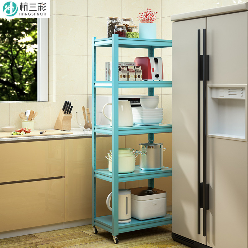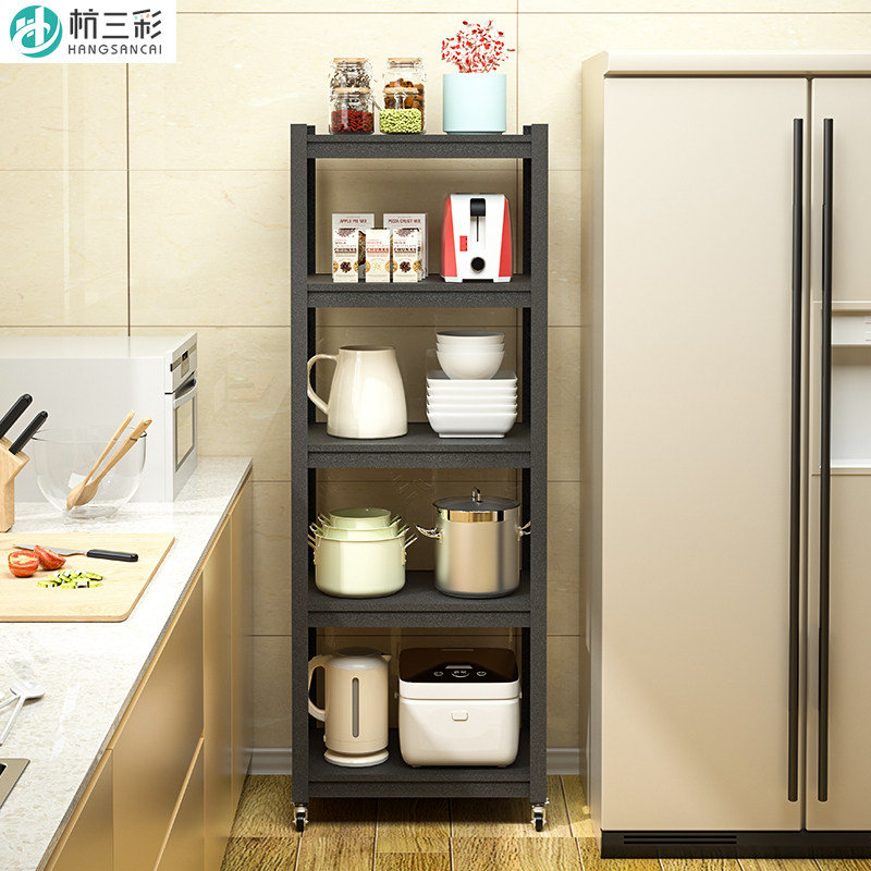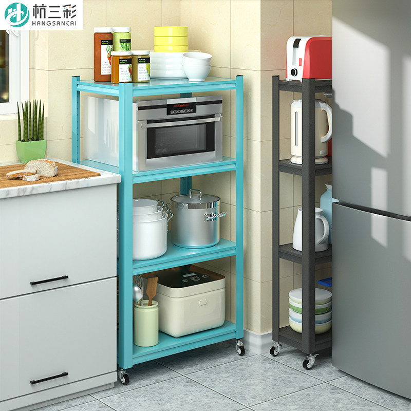 Wheeled kitchen rack microwave oven metal floor multi-layer multi-functional mobile home seam storage iron shelf