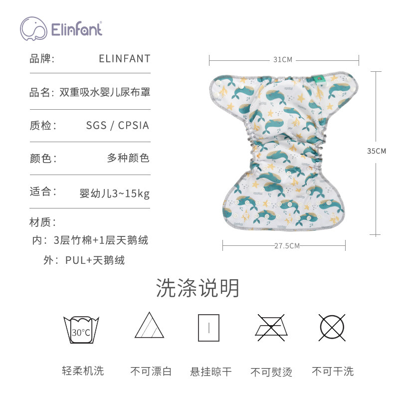 elinfant cloth diapers for infants and young children leak-proof washable waterproof urine-separating skin-friendly velvet belt pad large-capacity night use