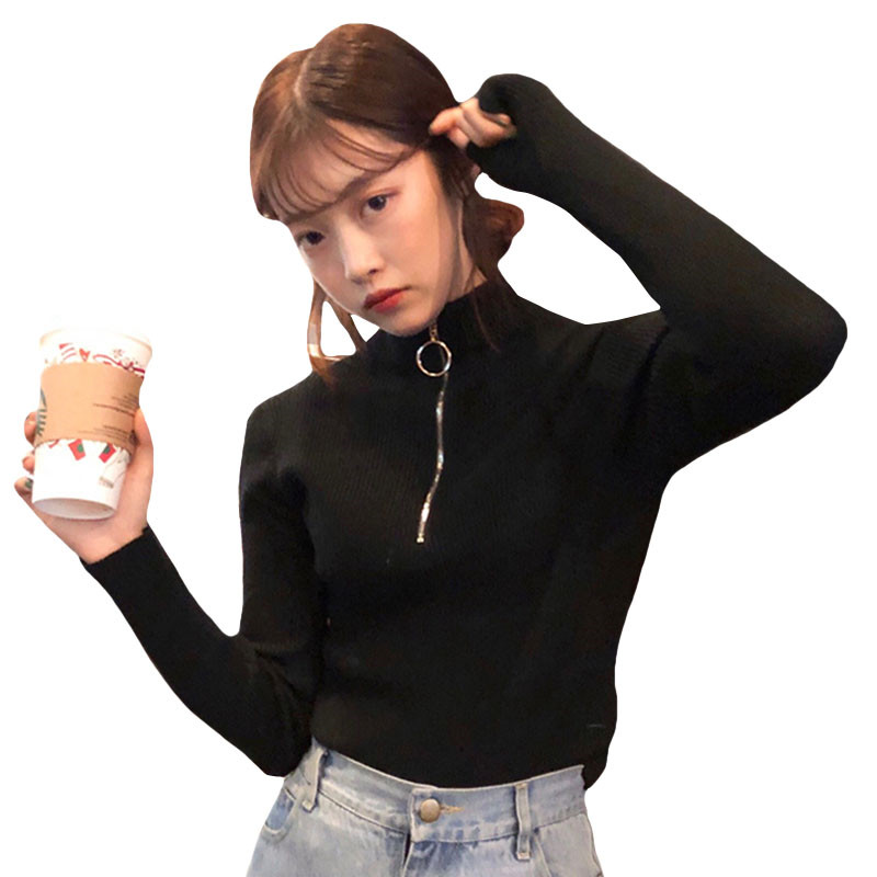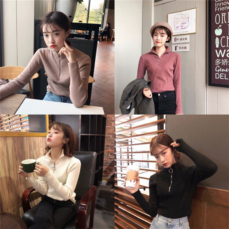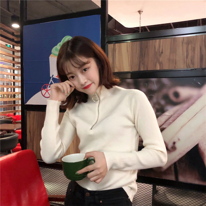 Autumn and winter pull-up half-height neck pullover slim long-sleeved knitted leggings design sense temperament inner tops female tide